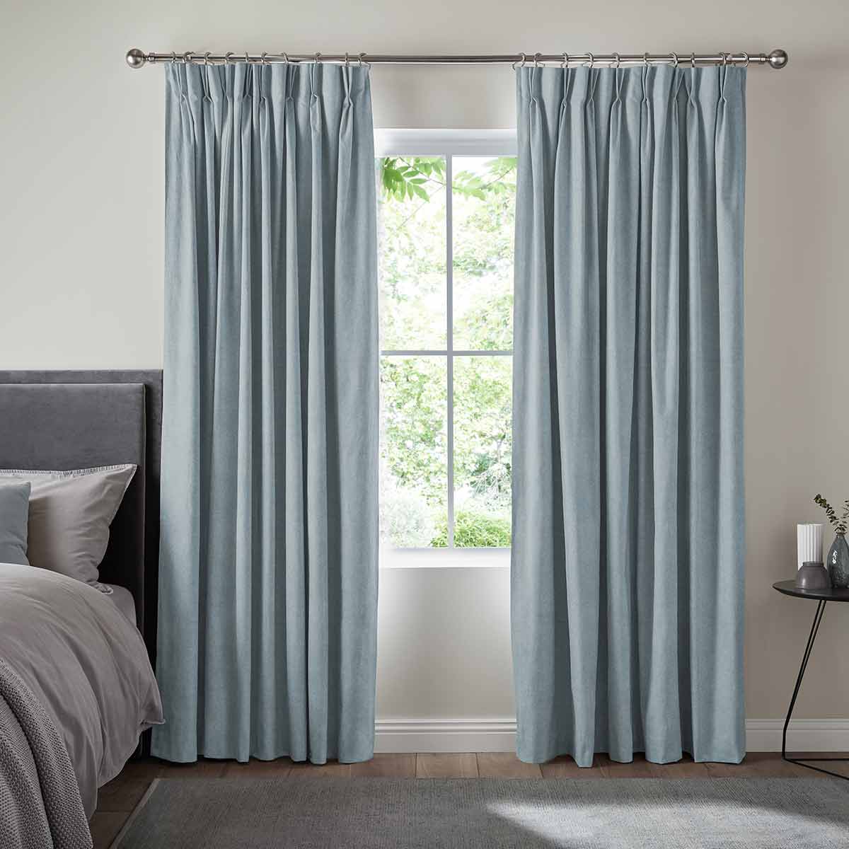 Double/Triple pinch pleat - Pinch pleat curtains can be fitted to a pole or a track. This header style has permenant sewn in pleats available in 4 inch or 6 inch sizes. A gliding hook at 100mm allows you to set the perfect position.