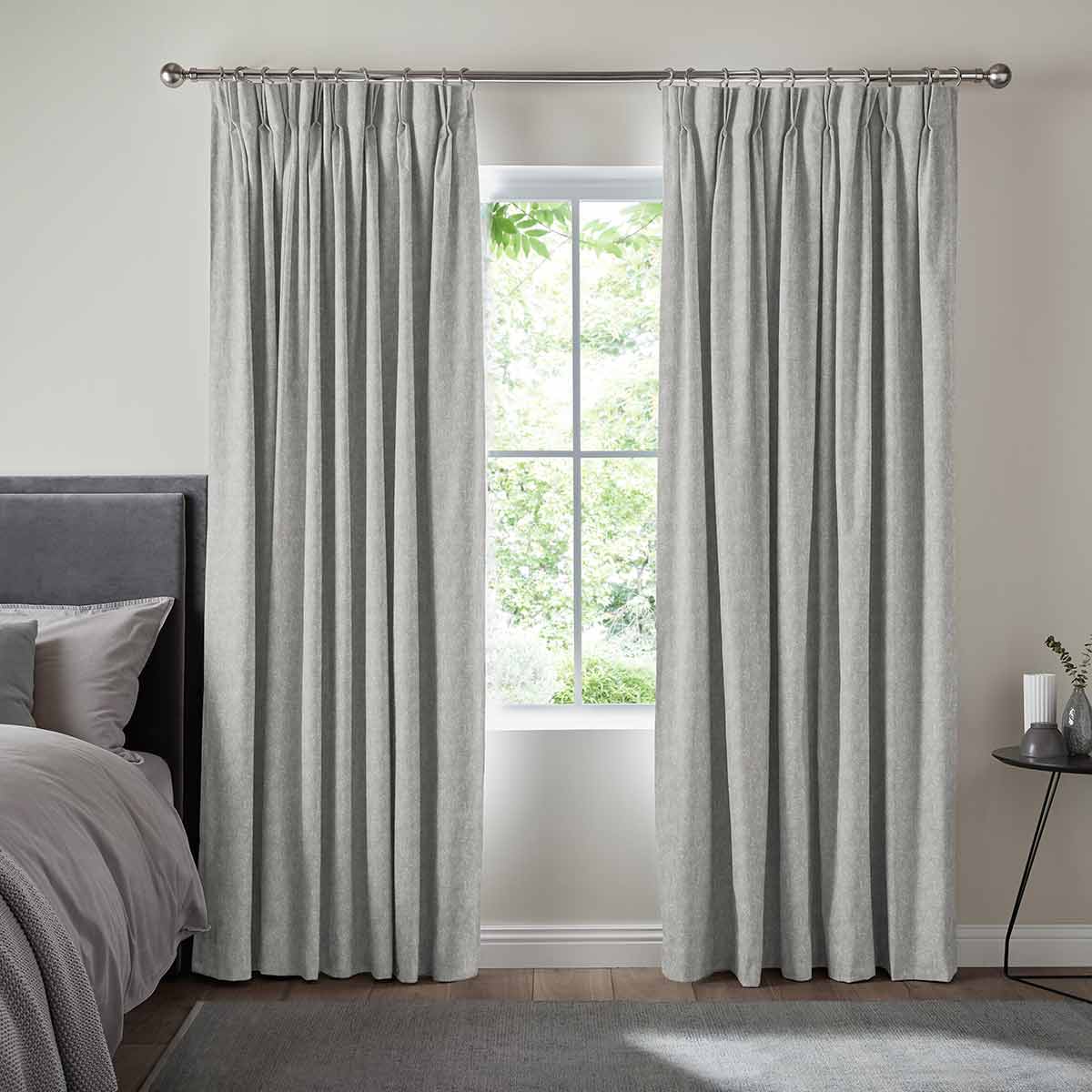 Double/Triple pinch pleat - Pinch pleat curtains can be fitted to a pole or a track. This header style has permenant sewn in pleats available in 4 inch or 6 inch sizes. A gliding hook at 100mm allows you to set the perfect position.