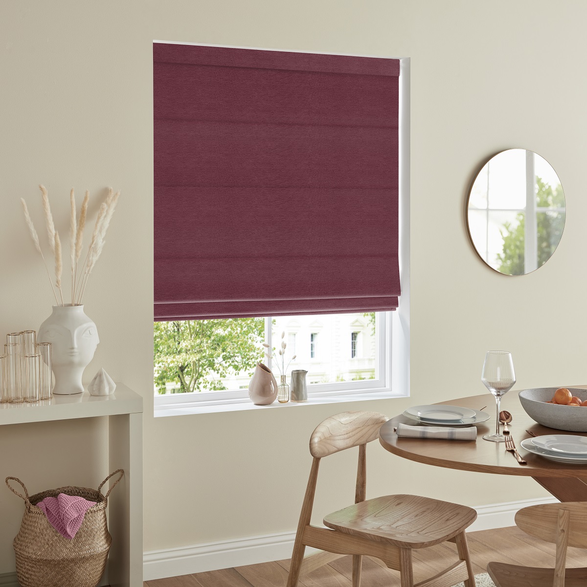 Featuring an embossed pattern with a subtle yet eye-catching sheen, this 100% polyester fabric has a dark purple hue that is ideal for creating a royal and relaxed feel in any room.