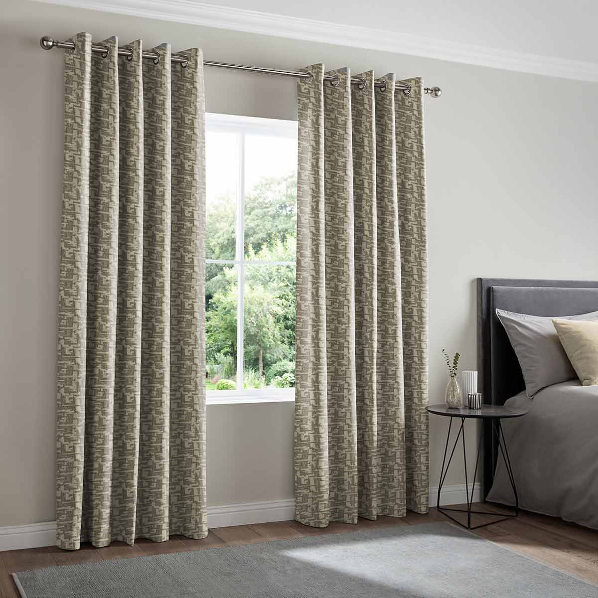With an eye-catching textured jacquard-weave pattern and subtle silver sheen, this design features a light grey colour to create a bright and cooling atmosphere in any room.