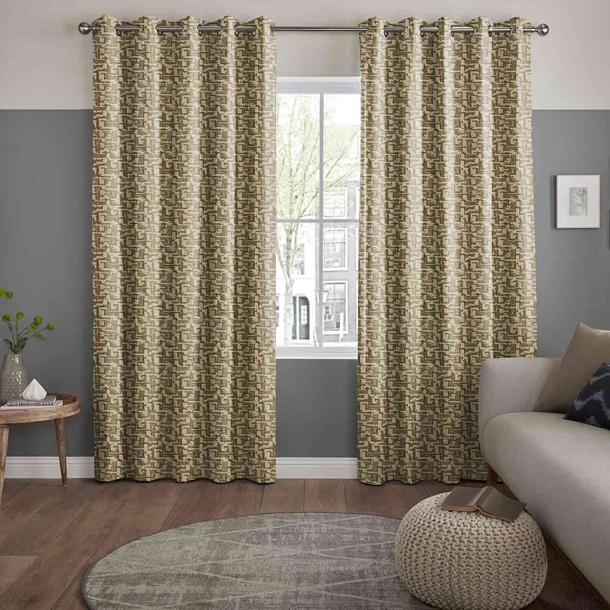 With an eye-catching textured jacquard-weave pattern and subtle sheen, this design features a warming ochre brown hue to create a bright and relaxed atmosphere in any room.