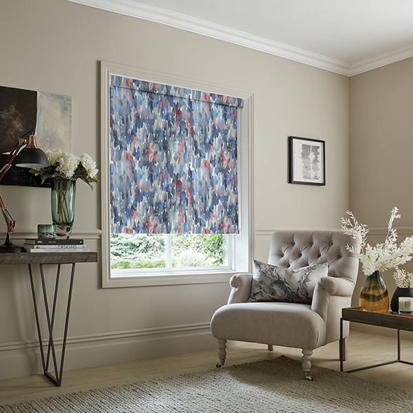Blue hand-painted design of roller blind by Voyage Maison. The pastel colours are perfect for a bedroom or living room setting, and they’ll add a touch of luxury to your space.