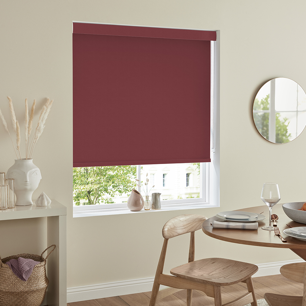 Simple blackout roller design in red colour. That perfectly complements the room. Made with high-quality polyester that will last for years.
