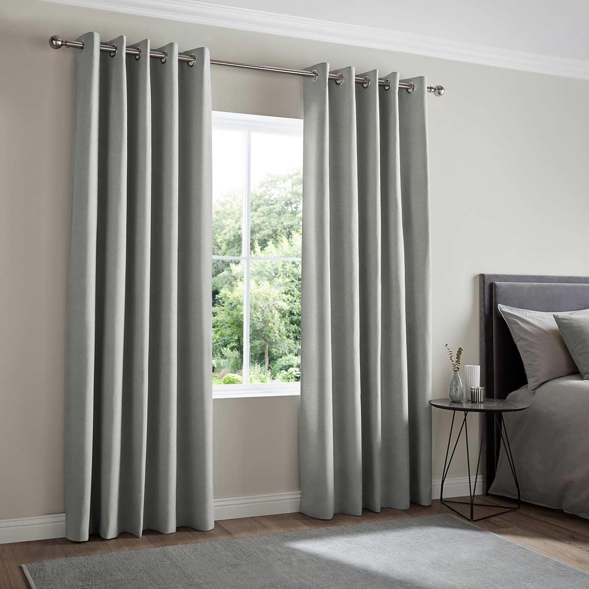 Eyelet - Eyelet curtains can only be fitted to poles. They have a metal ring stamped into the top of the fabric available in 5 colours and 2 sizes. Eyelet rings are spaced evenly across the header with 30mm of fabric above.