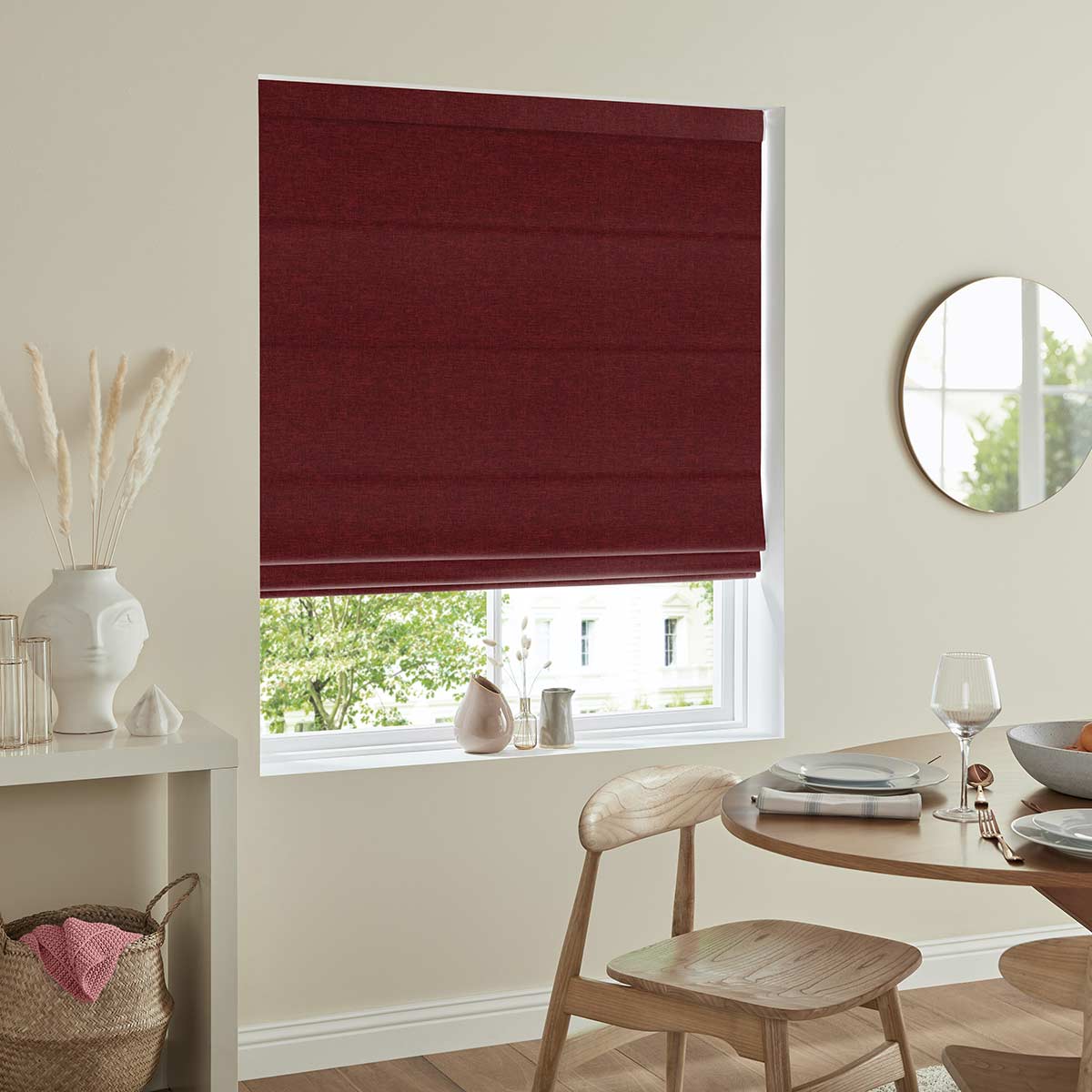 Featuring a blend of polyester and cotton, this soft textured fabric has a rich, deep red tone that is ideal for adding a warming sense of energy to a home’s decor.
