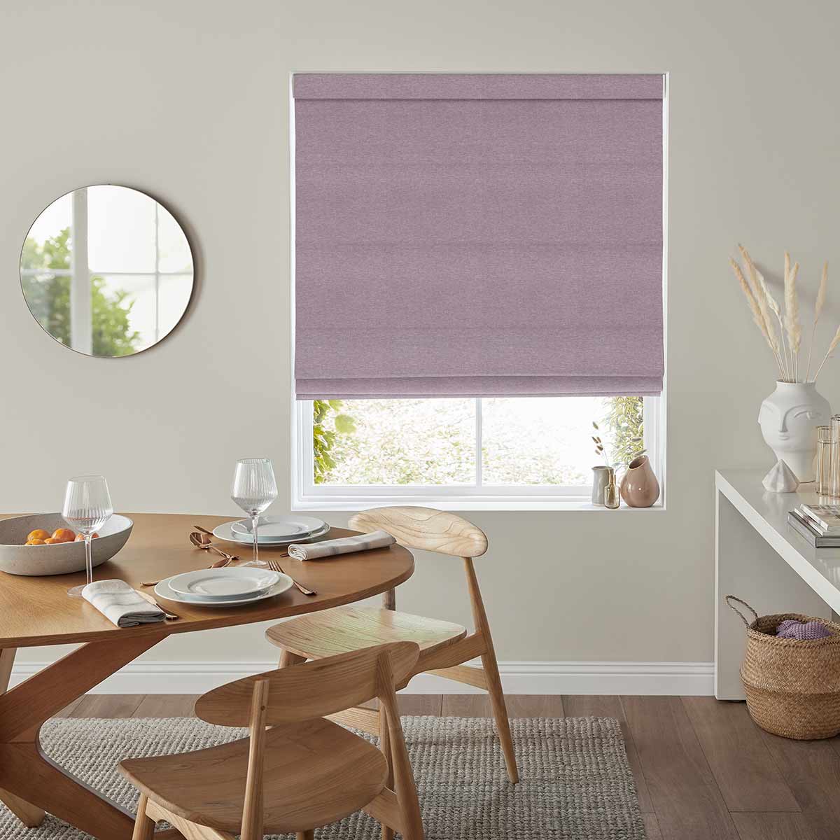 Featuring a blend of polyester and cotton, this soft textured fabric has a subtle purple-grey tone that is ideal for adding an open and stylish sense of comfort to any home’s decor.