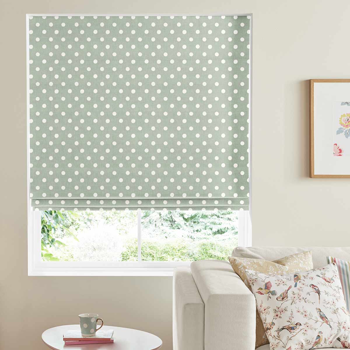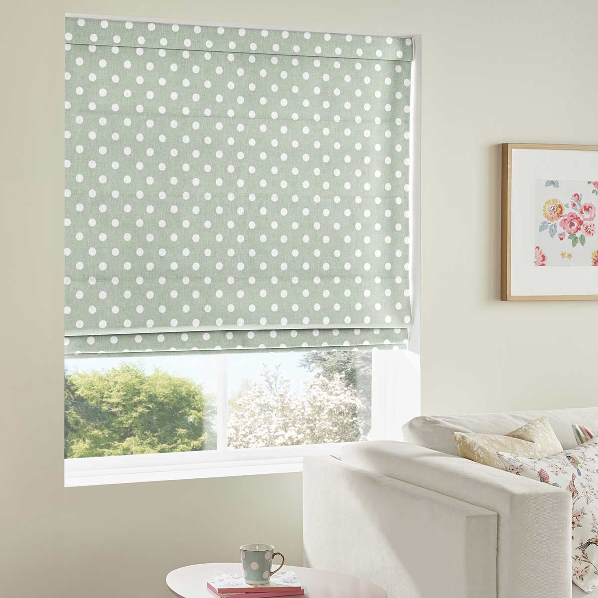 For a relaxed and calming feel, this pastel green design features a white polka dot pattern for creating a natural sense of openness in your rooms.