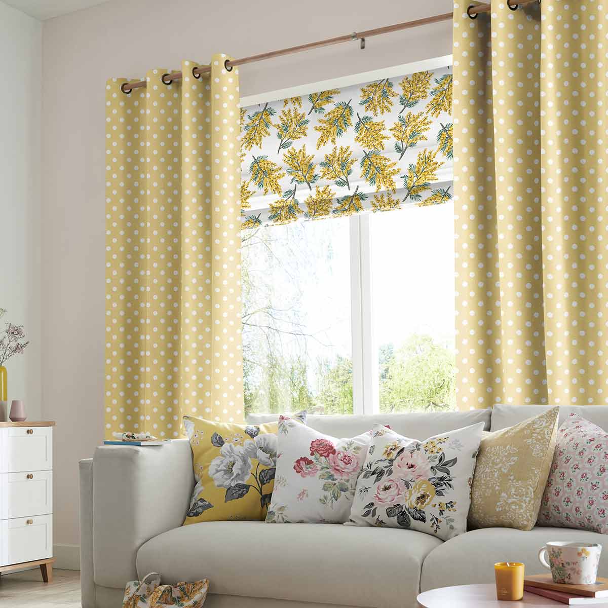 | Additional Information | For adding energy to your home, the Cath Kidston’s designer collection features roman blinds with vintage patterns and illustrations to so you can find the perfect design for all your rooms.nUsing a 100% cotton finish, this bright yellow design features a white polka dot pattern that creates a bright and open atmosphere in any room.nBy focusing on classic colours covering bright primary hues and softer pastel tones, this textured fabric design is perfect for providing a subtle light filtering solution in your home. |