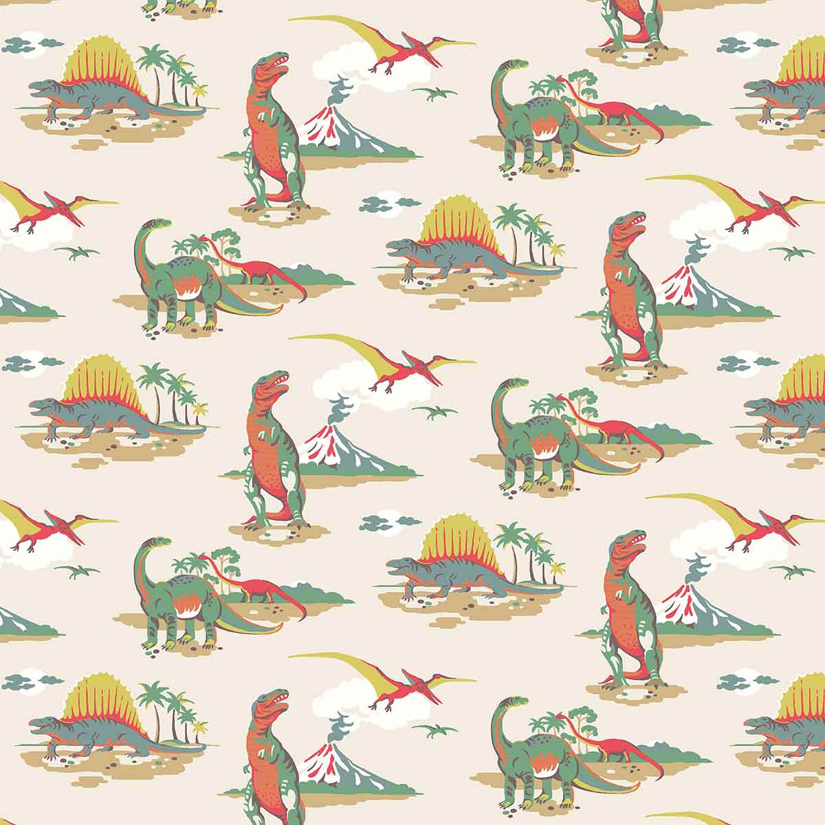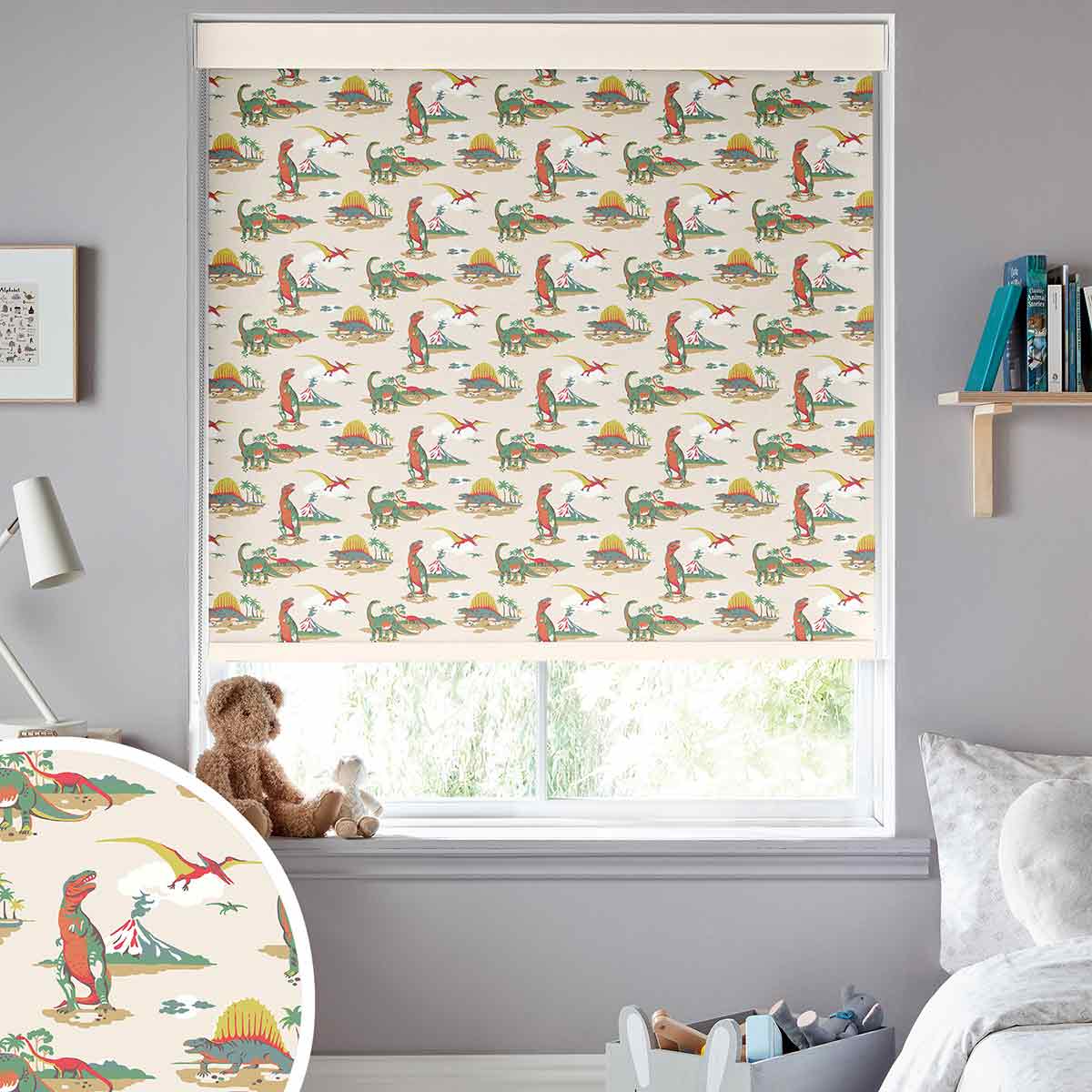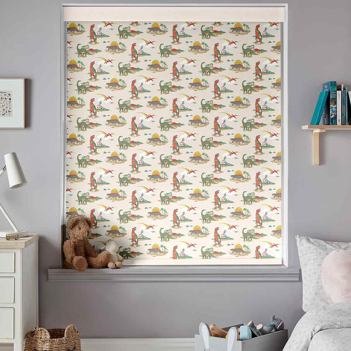 Featuring a range of illustrated dinosaurs with natural green and red colours, this Jurassic design is perfect for creating a prehistoric sense of fun in any child’s room.