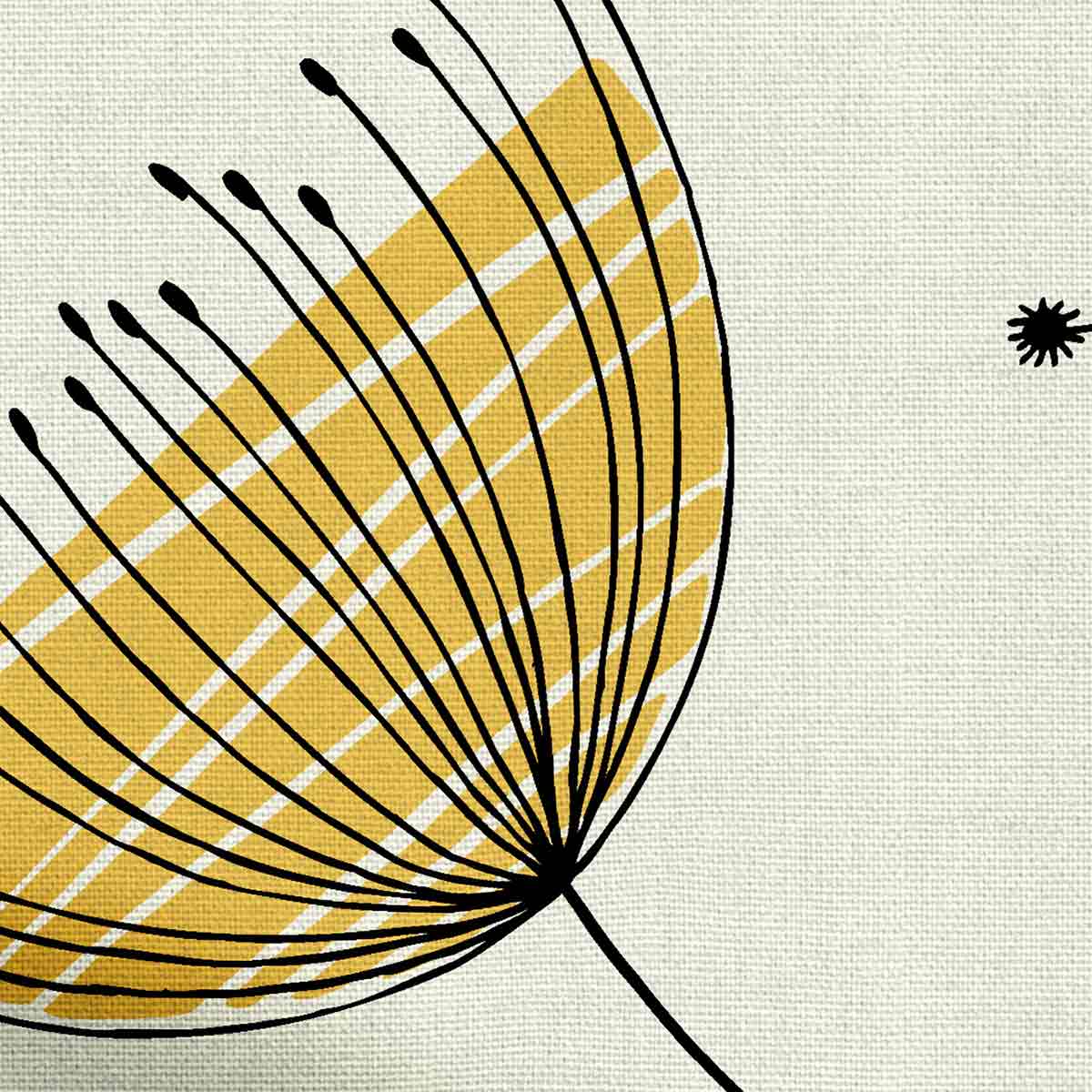 With its abstract illustrations of yellow dandelion flowers and linear patterning over a mono-white background, this contemporary design is perfect for adding a bright and friendly sense of style into any room.