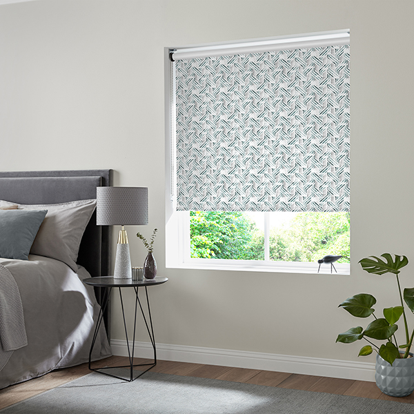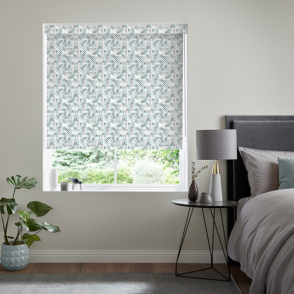 Green blackout roller blind with a intriguing geometric design on white background. The blackout fabric eliminates light from the room. It helps to insulate the room in winters and keeps the room cooler in summer. Made with high-quality polyester that will last for years.