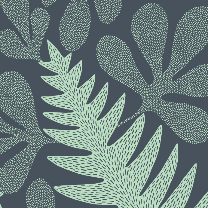 Deep sea features intricate dot work and takes inspiration from unique sea plants and seaweed. The beautiful underwater forests are brought to life through a palette of reef-inspired shades from deep teals to light greens.