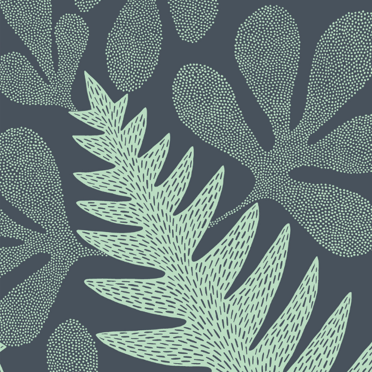 Deep sea features intricate dot work and takes inspiration from unique sea plants and seaweed. The beautiful underwater forests are brought to life through a palette of reef-inspired shades from deep teals to light greens.