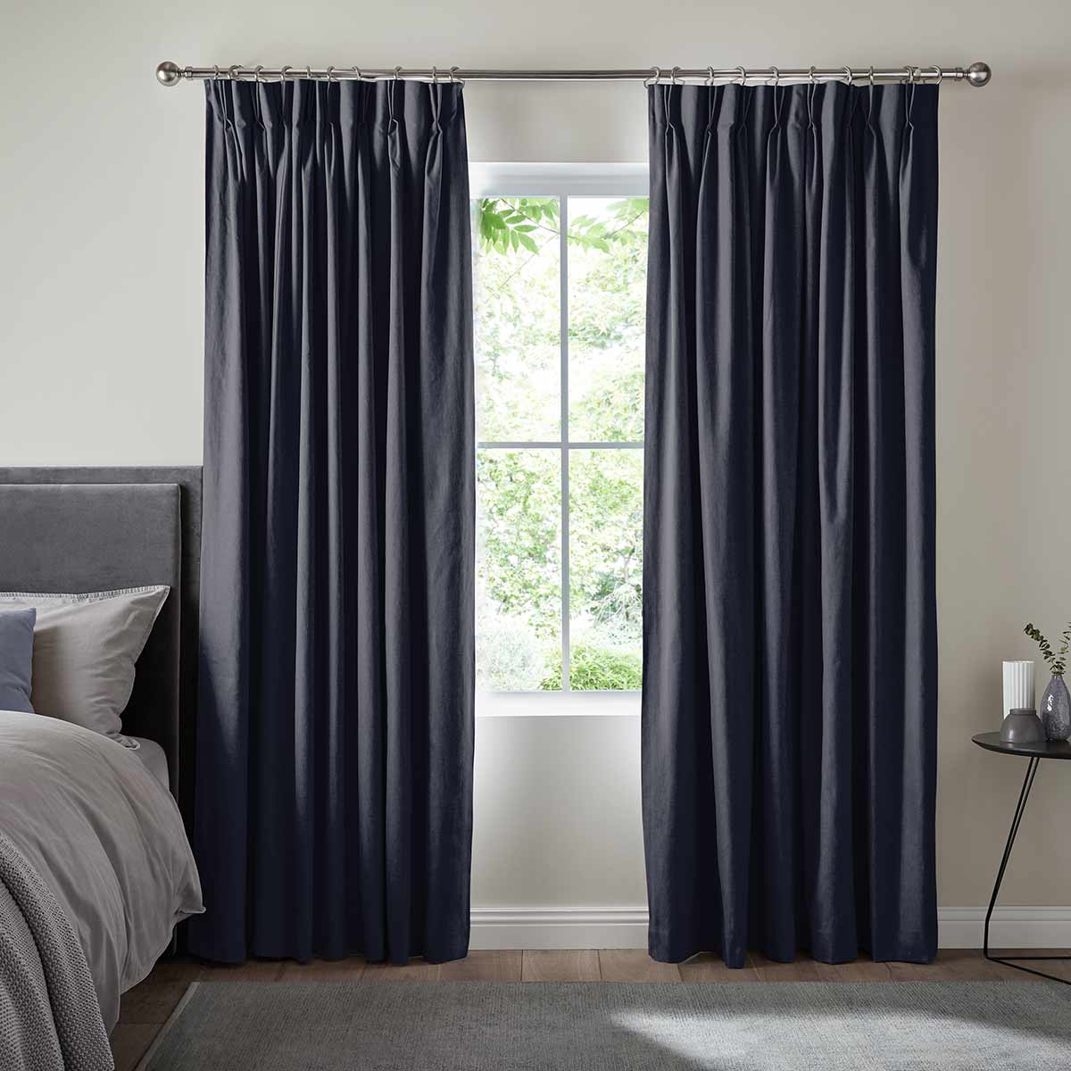 Double/Triple pinch pleat - Pinch pleat curtains can be fitted to a pole or a track. This header style has permenant sewn in pleats available in 4 inch or 6 inch sizes. A gliding hook at 100mm allows you to set the perfect position.