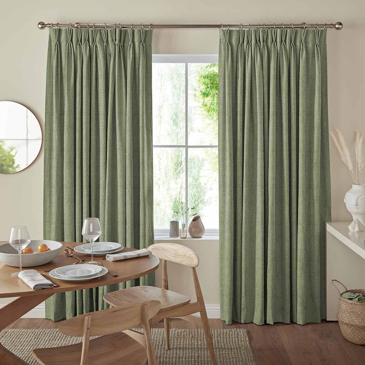 Double/Triple pinch pleat - Pinch pleat curtains can be fitted to a pole or a track. This header style has permenant sewn in pleats available in 4 inch or 6 inch sizes. A gliding hook at 100mm allows you to set the perfect position.