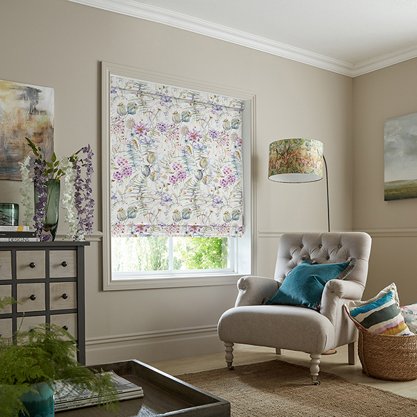 Featuring large watercolour sketches of blooming British wildflowers and rich purple-red highlights, this design can create a warm and comforting atmosphere in any room.