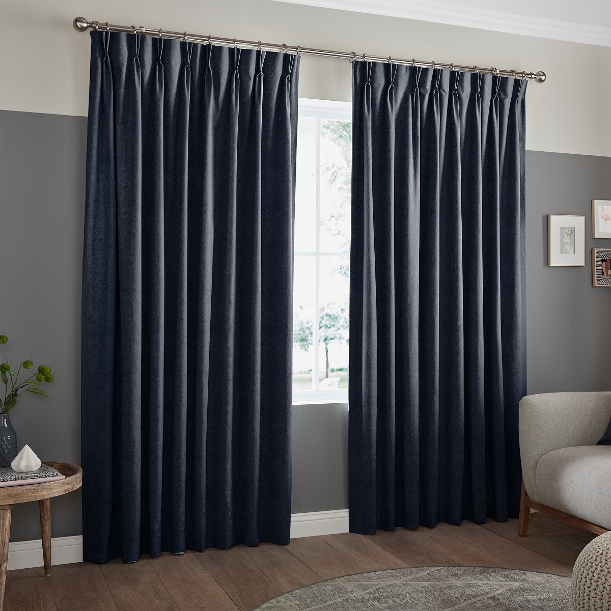 This medium-weight plain cloth with a subtle herringbone weave in dark navy, will drape perfectly for luxurious curtains.
