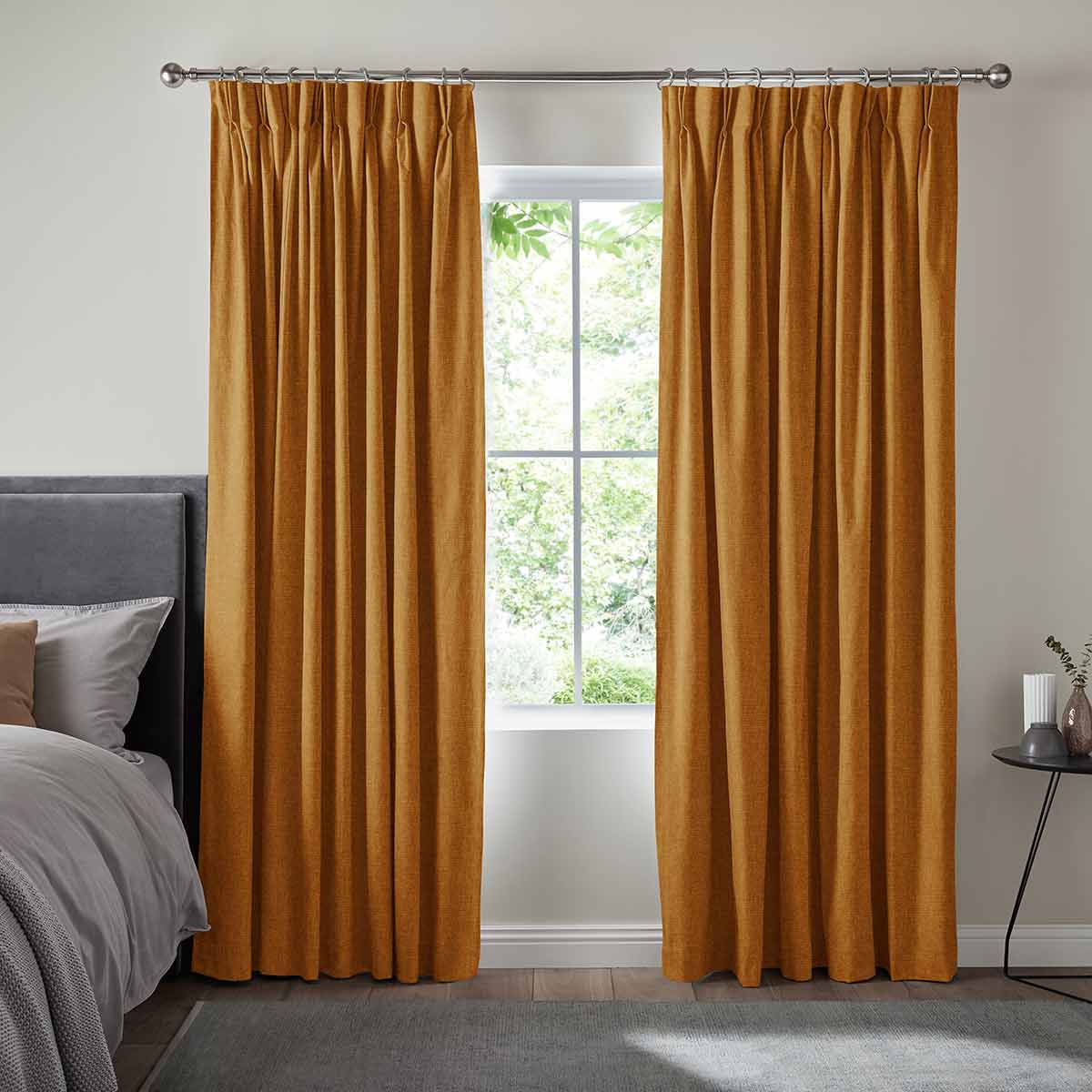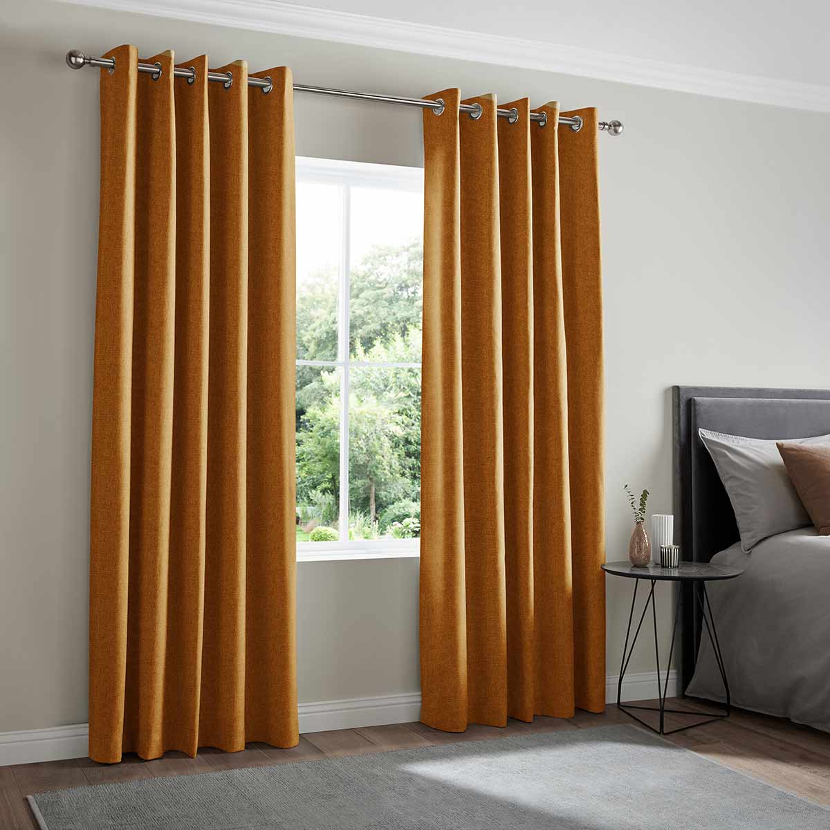 This 100% polyester fabric features a woven-style texture in an autumnal orange hue that can create a warm and cosy feeling to suit your room’s existing décor.