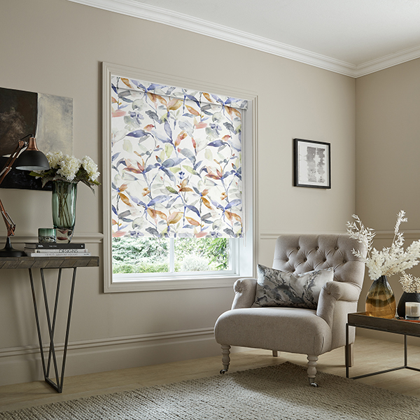 Green hand-painted design of roller blind by Voyage Maison. The pastel colours are perfect for a bedroom or living room setting, and they’ll add a touch of luxury to your space.