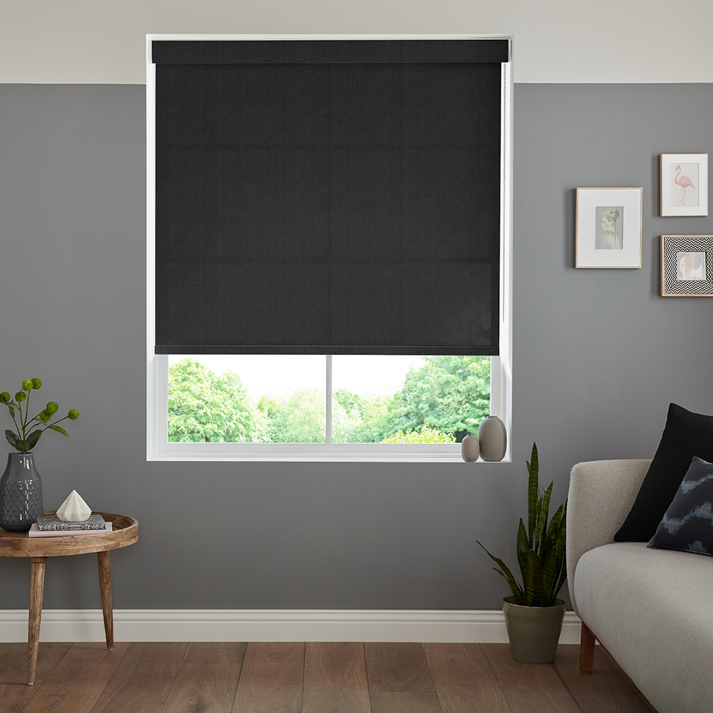 Simple yet stylish roller blind design in black colour. The translucent, fire retardant fabric helps to control natural light and fire retardant property increase safety in case of fire. Perfect for a kitchen or living room.