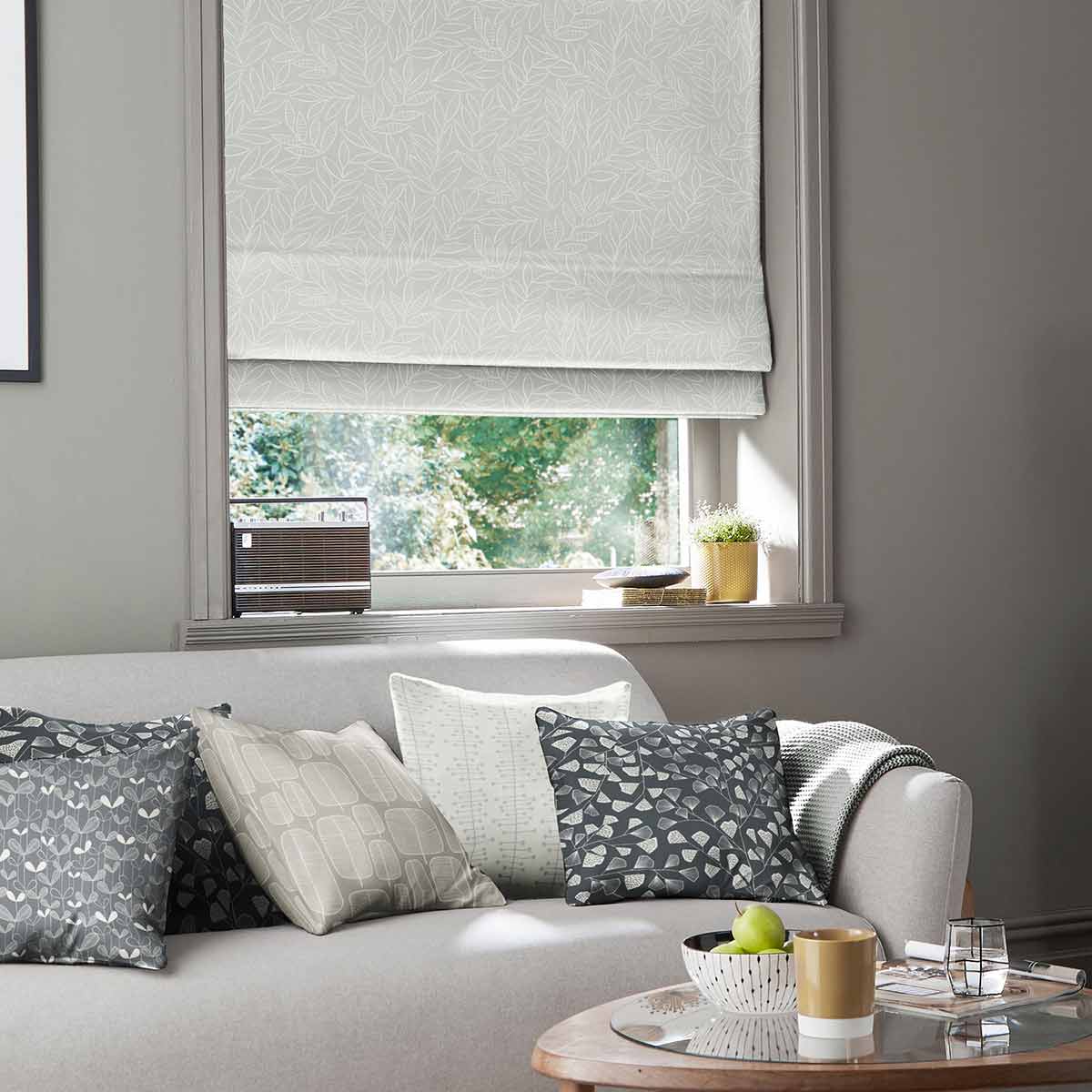 With its white line leaf patterning over a cool light-grey hue, this geometric style is perfect for creating a bright and open feel in any room.