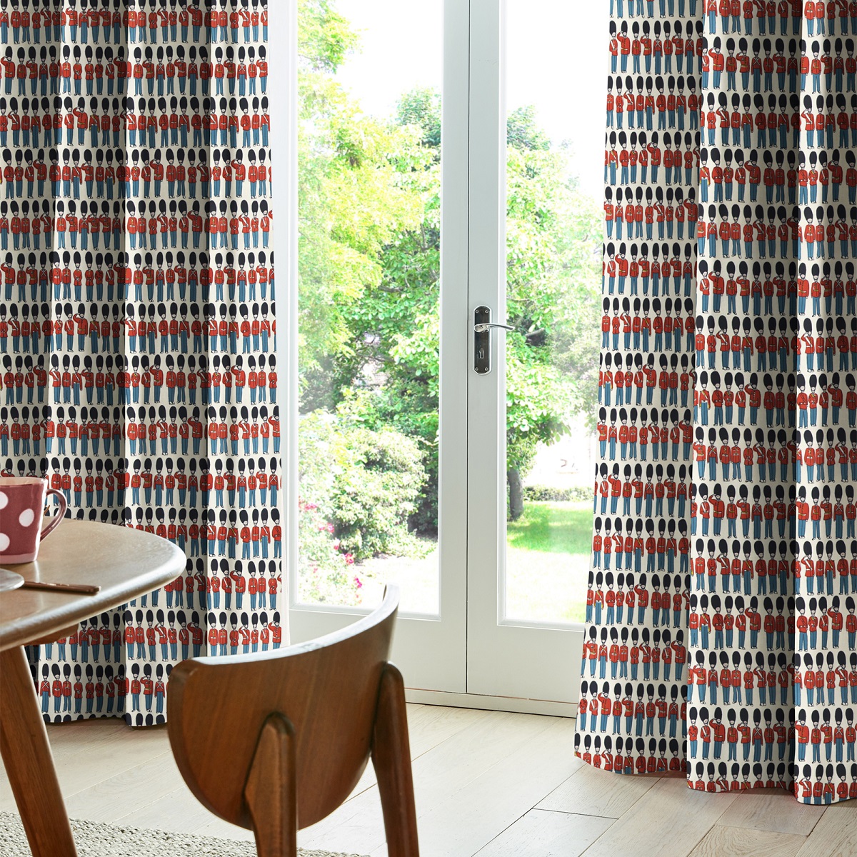 This cute London guard pattern uses colourful red and blue tones over its white background, which is perfect for brightening your little soldier’s bedroom.