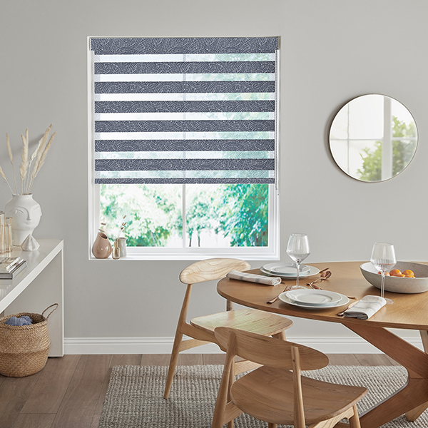 Enhance your space with our Madeira Navy Fifty50 blind in classic Black, Grey. Its Plains & Textures design and Translucent fabric effortlessly combine style and functionality for a perfect balance of privacy and natural style.
