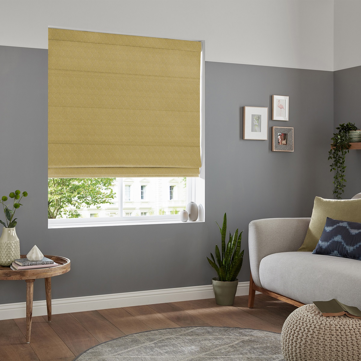 With its raised ogee-styled patterning, this textured design roman blind uses apple green colours to create a calm and serene atmosphere in any room.
