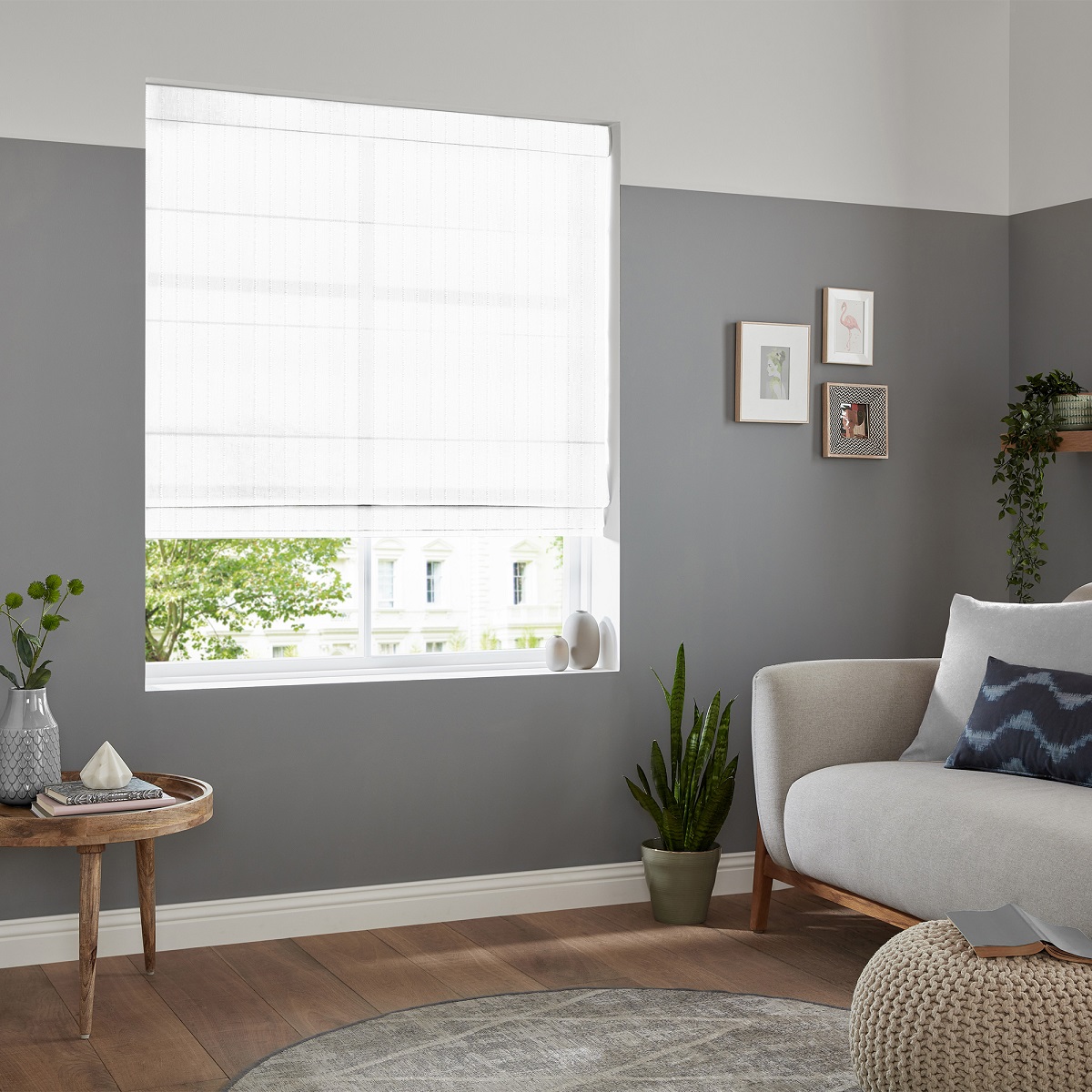 This translucent, pure white fabric features a vertical weave pattern that is ideal for adding a sense of bright and open space in any room.