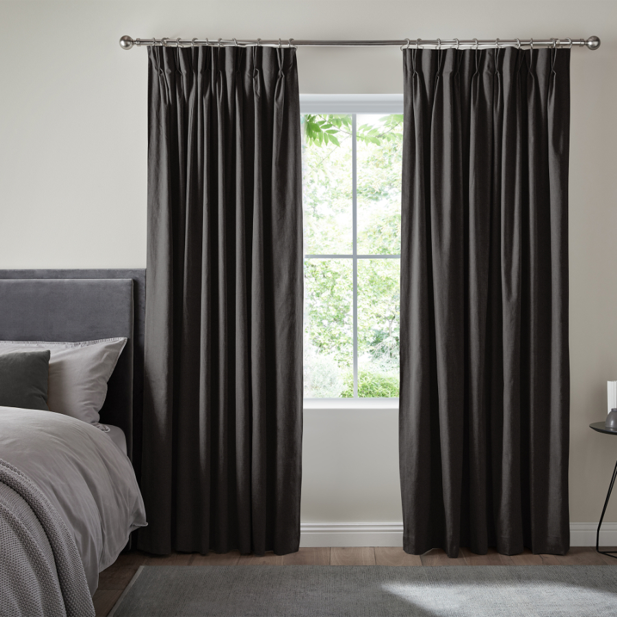 Double/Triple pinch pleat - Pinch pleat curtains can be fitted to a pole or a track. This header style has permenant sewn in pleats available in 4 inch or 6 inch sizes. A gliding hook at 100mm allows you to set the perfect position.