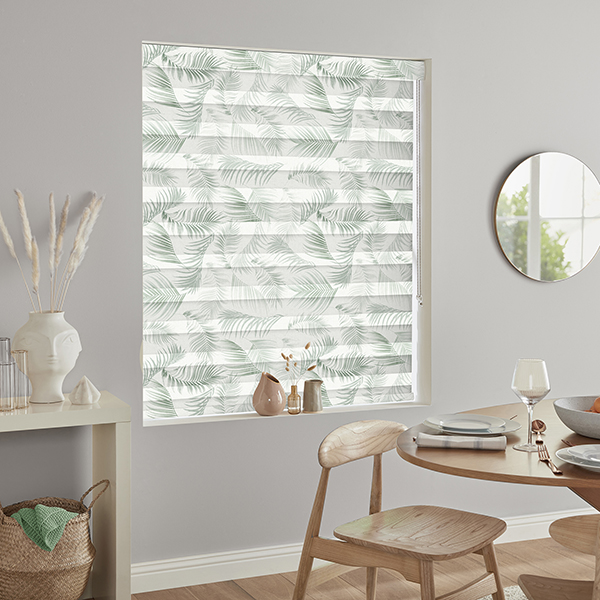 Enhance your space with our Naryn Sage Fifty50 blind in classic Grey, White. Its Flowers & Leaves design and Translucent fabric effortlessly combine style and functionality for a perfect balance of privacy and natural style.