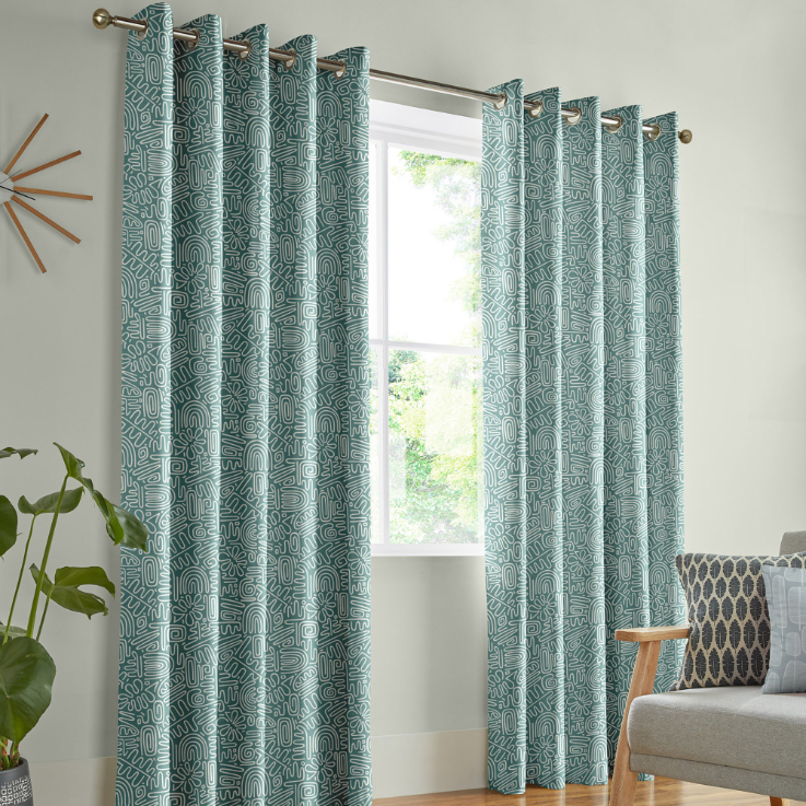 Eyelet - Eyelet curtains can only be fitted to poles. They have a metal ring stamped into the top of the fabric available in 5 colours and 2 sizes. Eyelet rings are spaced evenly across the header with 30mm of fabric above.