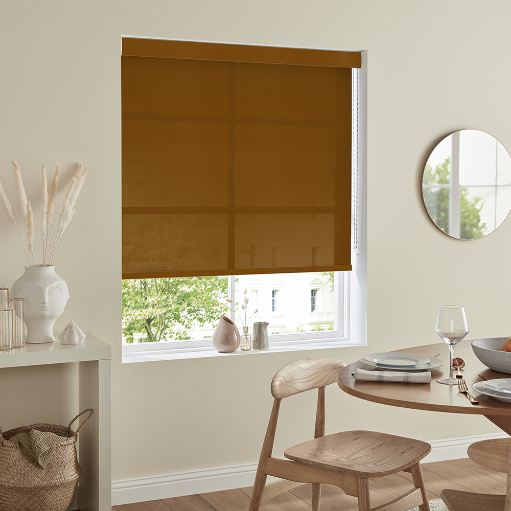 Simple yet stylish roller blind design in brown colour. The translucent fabric helps to control natural light. Made out of high-quality polyester that will last you for years.