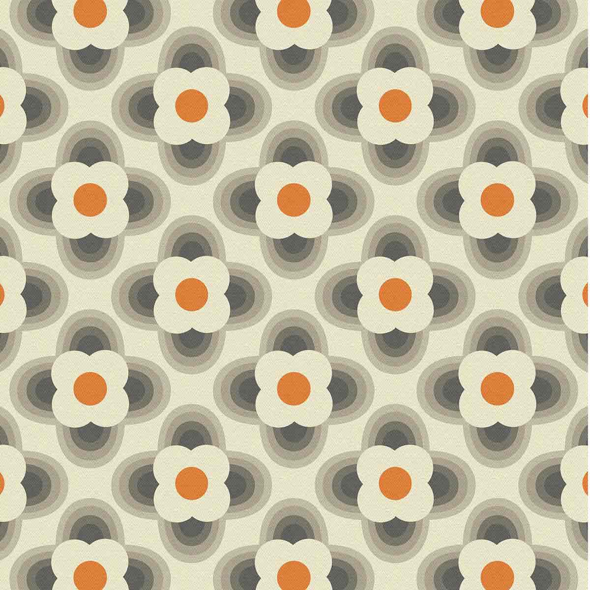 Featuring a repeating pattern of large, retro-inspired flowers, this design uses a range of green hues and a deep rich orange colour to create a classic style that adds a welcoming, playful feel to any room.