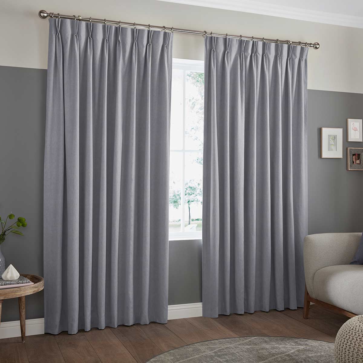 Double/Triple pinch pleat - Pinch pleat curtains can be fitted to a pole or a track. This header style has permenant sewn in pleats available in 4 inch or 6 inch sizes. A gliding hook at 100mm allows you to set the perfect position.