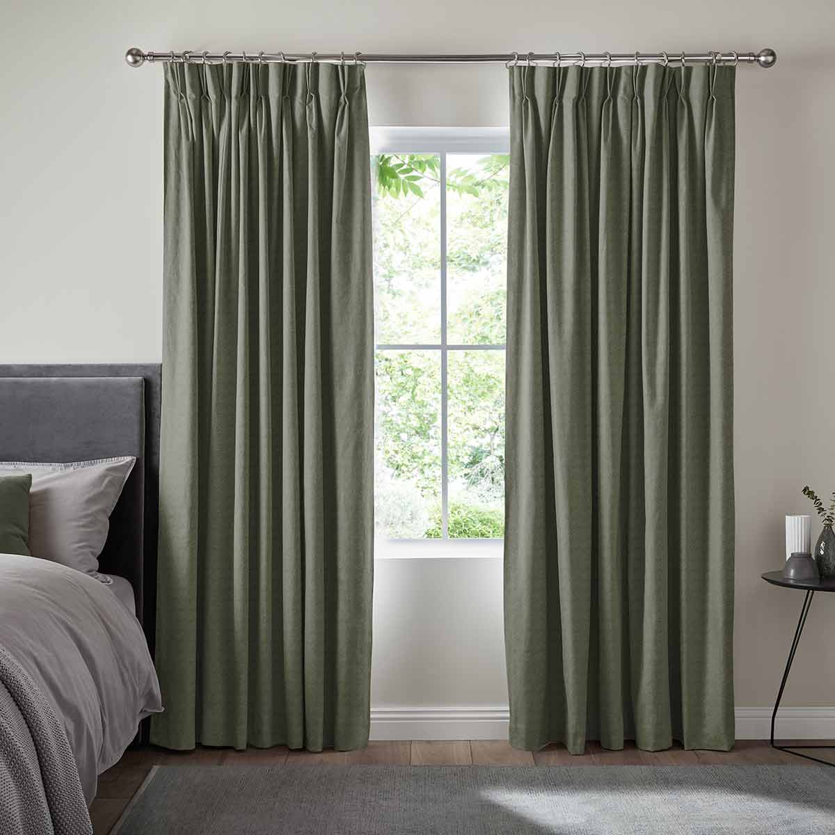Double/Triple pinch pleat - Pinch pleat curtains can be fitted to a pole or a track. This header style has permenant sewn in pleats available in 4 inch or 6 inch sizes. A gliding hook at 100mm allows you to set the perfect position.