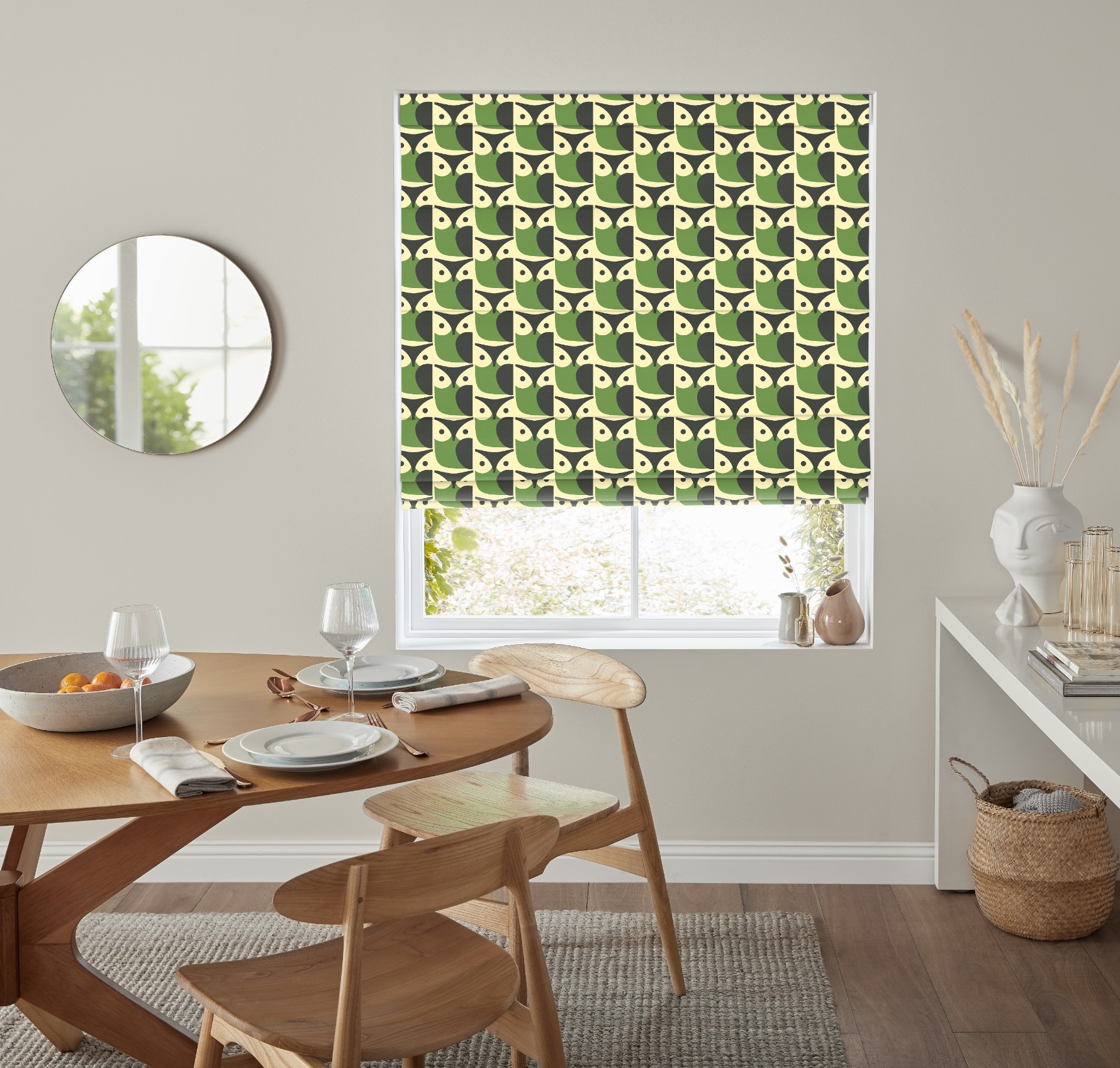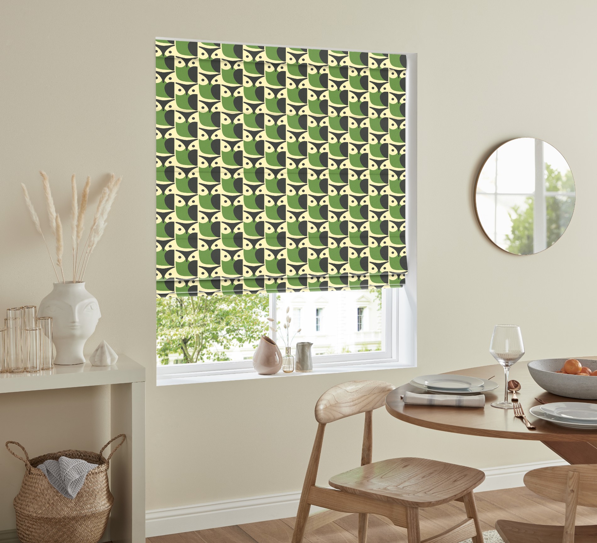 Owl Chalky Green Roman Blind