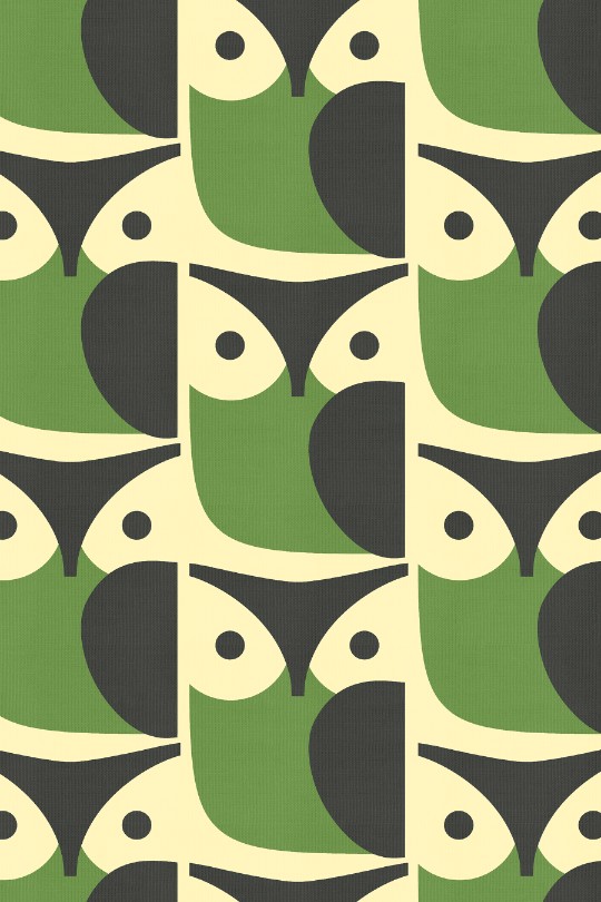 With retro-inspired owl illustrations, this stylised design uses a rich green colour and deep blue tones to create a bright and playful atmosphere in any room.