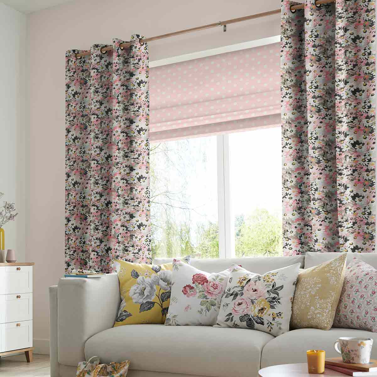 Featuring painted daisies in a range of pink hues, the Cath Kidston’s designer collection features roman blinds with vintage patterns and illustrations to so you can find the perfect design for all your rooms.nUsing a 100% cotton finish, this classic design is perfect for adding a sense of warm comfort to any room.nBy focusing on classic colours covering bright primary hues and softer pastel tones, this textured fabric design is perfect for providing a subtle light filtering solution in your home.