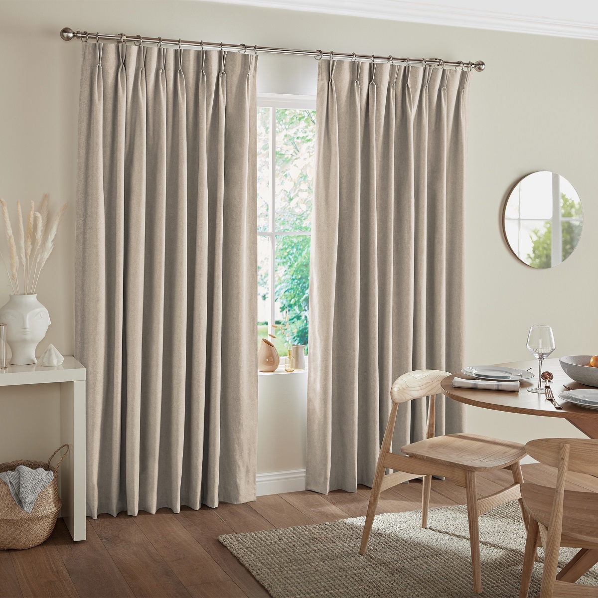 Double/Triple pinch pleat - Pinch pleat curtains can be fitted to a pole or a track. This header style has permenant sewn in pleats available in 4 inch or 6 inch sizes. A gliding hook at 100mm allows you to set the perfect position.