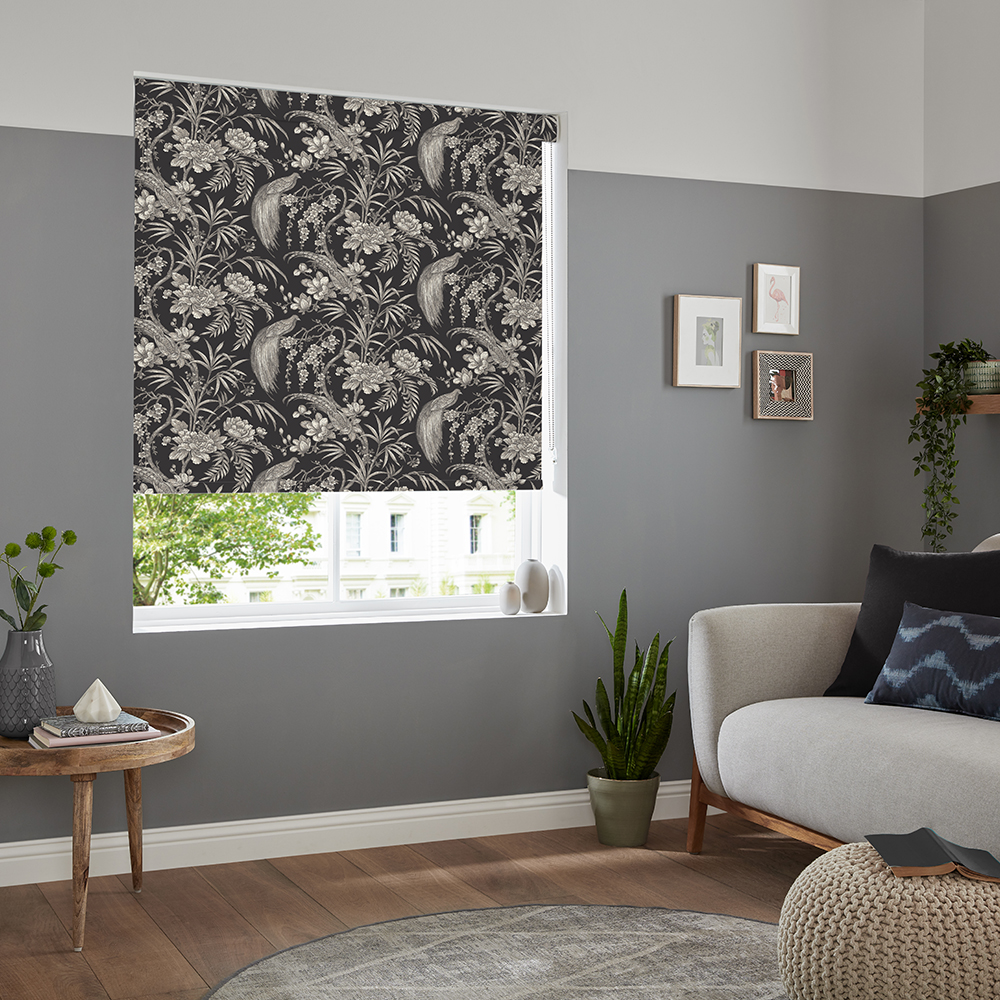 Add some interest to your room with this well-crafted roller design in black colour. Available in multiple base clothes for you to choose from.