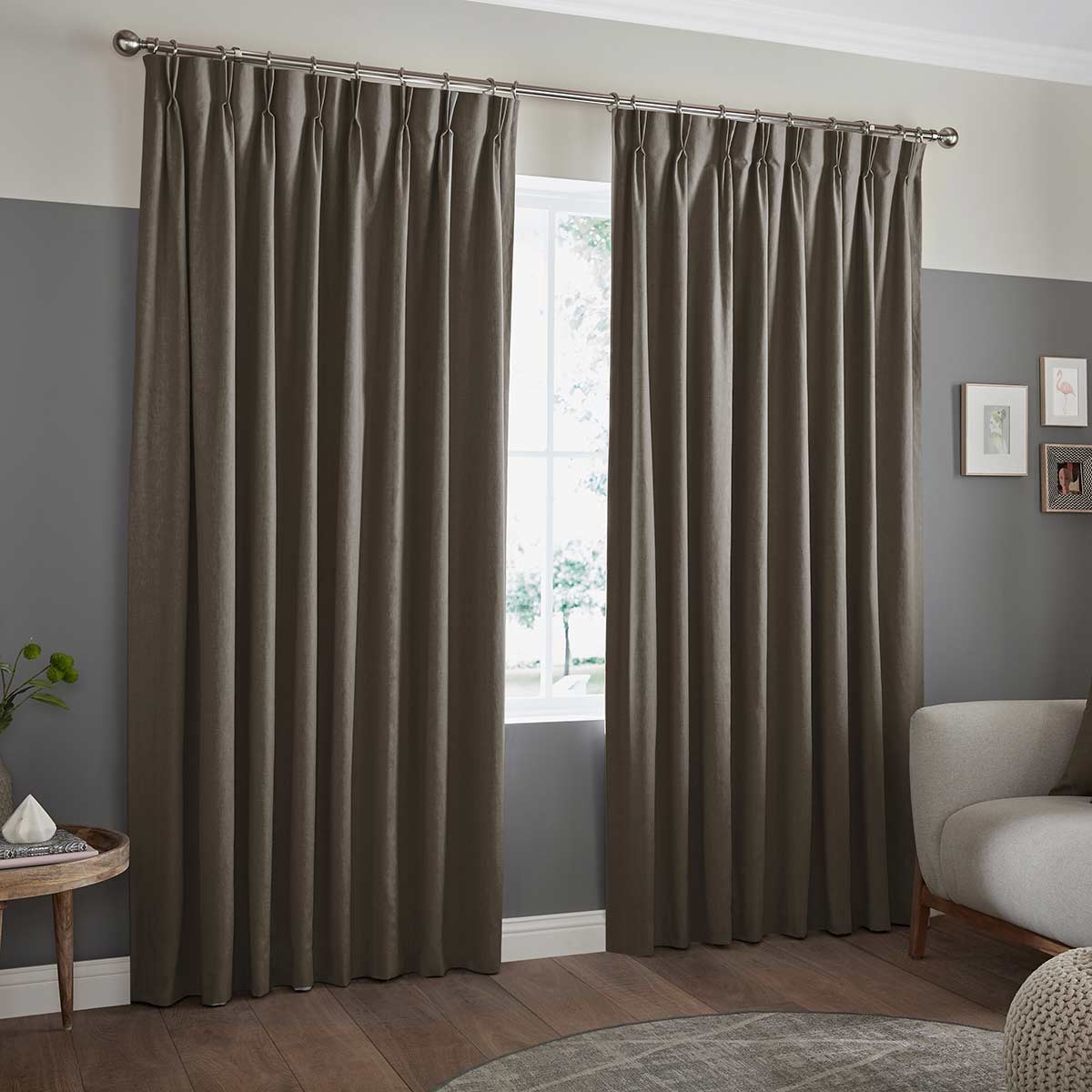 Double/Triple pinch pleat - Pinch pleat curtains can be fitted to a pole or a track. This header style has permenant sewn in pleats available in 4 inch or 6 inch sizes. A gliding hook at 100mm allows you to set the perfect position.