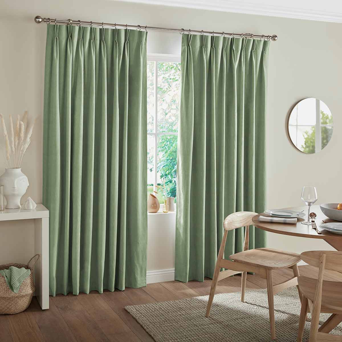 Double/Triple pinch pleat - Pinch pleat curtains can be fitted to a pole or a track. This header style has permenant sewn in pleats available in 4 inch or 6 inch sizes. A gliding hook at 100mm allows you to set the perfect position.