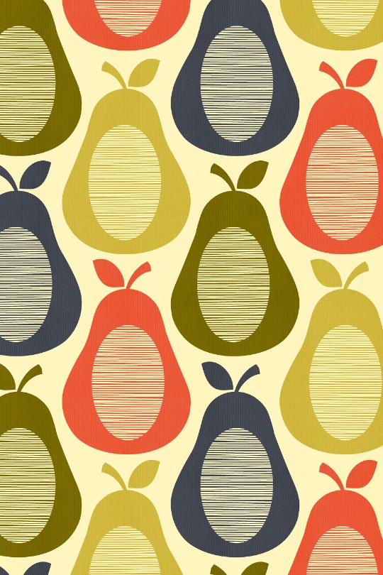 Featuring a bright, retro scribbled centred pear pattern that includes 60s colours such as rich tomato reds and natural pear greens, this design creates a cosy sense of home comfort in any room.