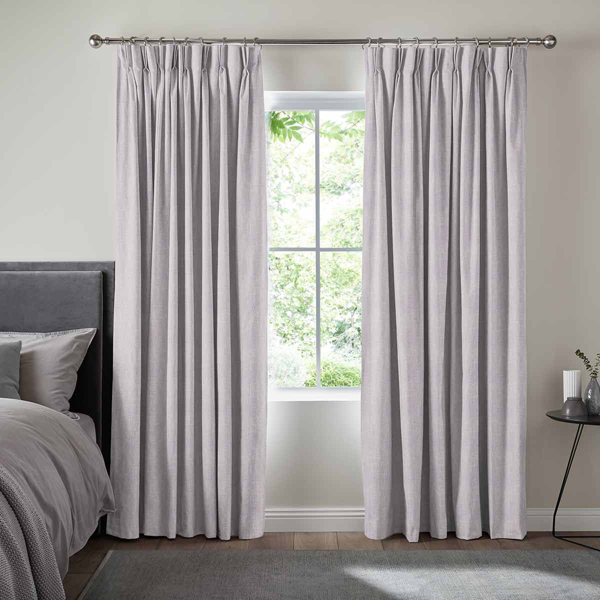 Double/Triple pinch pleat - Pinch pleat curtains can be fitted to a pole or a track. This header style has permenant sewn in pleats available in 4 inch or 6 inch sizes. A gliding hook at 100mm allows you to set the perfect position.