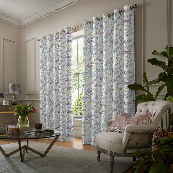 | Additional Information | Featuring a beautiful floral watercolour pattern in brushstrokes of vibrant purple and green hues, textured fabric cotton and linen finish to create the perfect lighting in your home., this design is available in a soft |