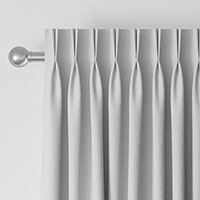 Double/Triple pinch pleat - Pinch pleat curtains can be fitted to a pole or a track. This header style has permenant sewn in pleats available in 4 inch or 6 inch sizes. A gliding hook at 100mm allows you to set the perfect position.