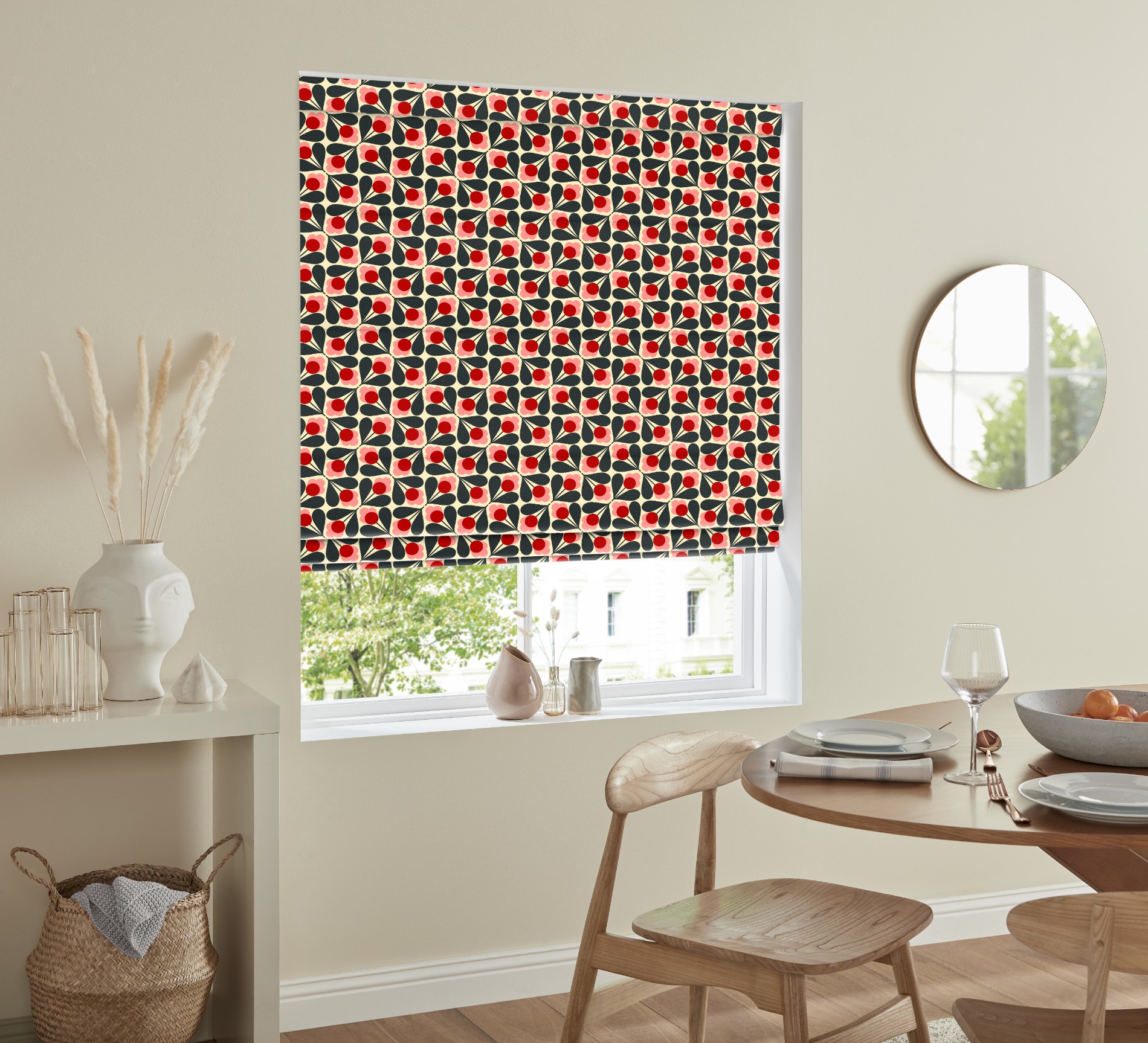 With its geometric style that features a retro-inspired floral pattern of vibrant reds and pinks, this eye-catching design is ideal for creating an open and passionate space in any room.