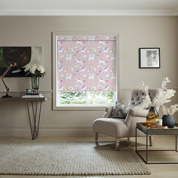 Joyful Pink watercolour style design of roller blind by Voyage Maison inspired by children stories is made of soft cotton and linen. It boost your children curiosity about the world.