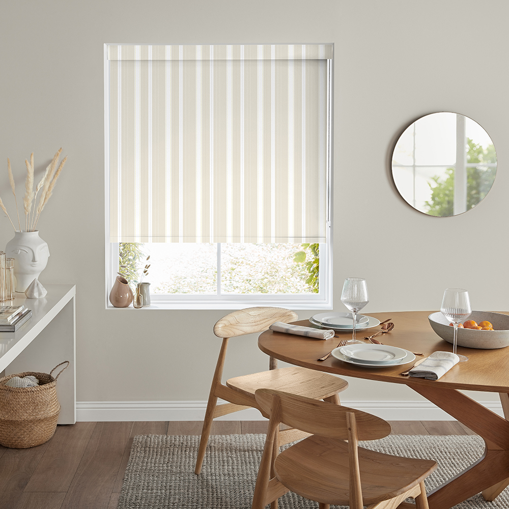 Complete your room with always stylish stripe design on a roller blind in kids colour. The subtle designs will easily fit any room. Made with soft cotton and linen and offers multiple base clothes to choose form.